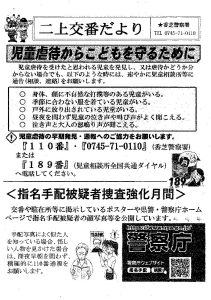 ・北今市秋祭りのお礼 ・下田幼小PTA資源回収事業へのお礼とご報告 ・二上交番だより